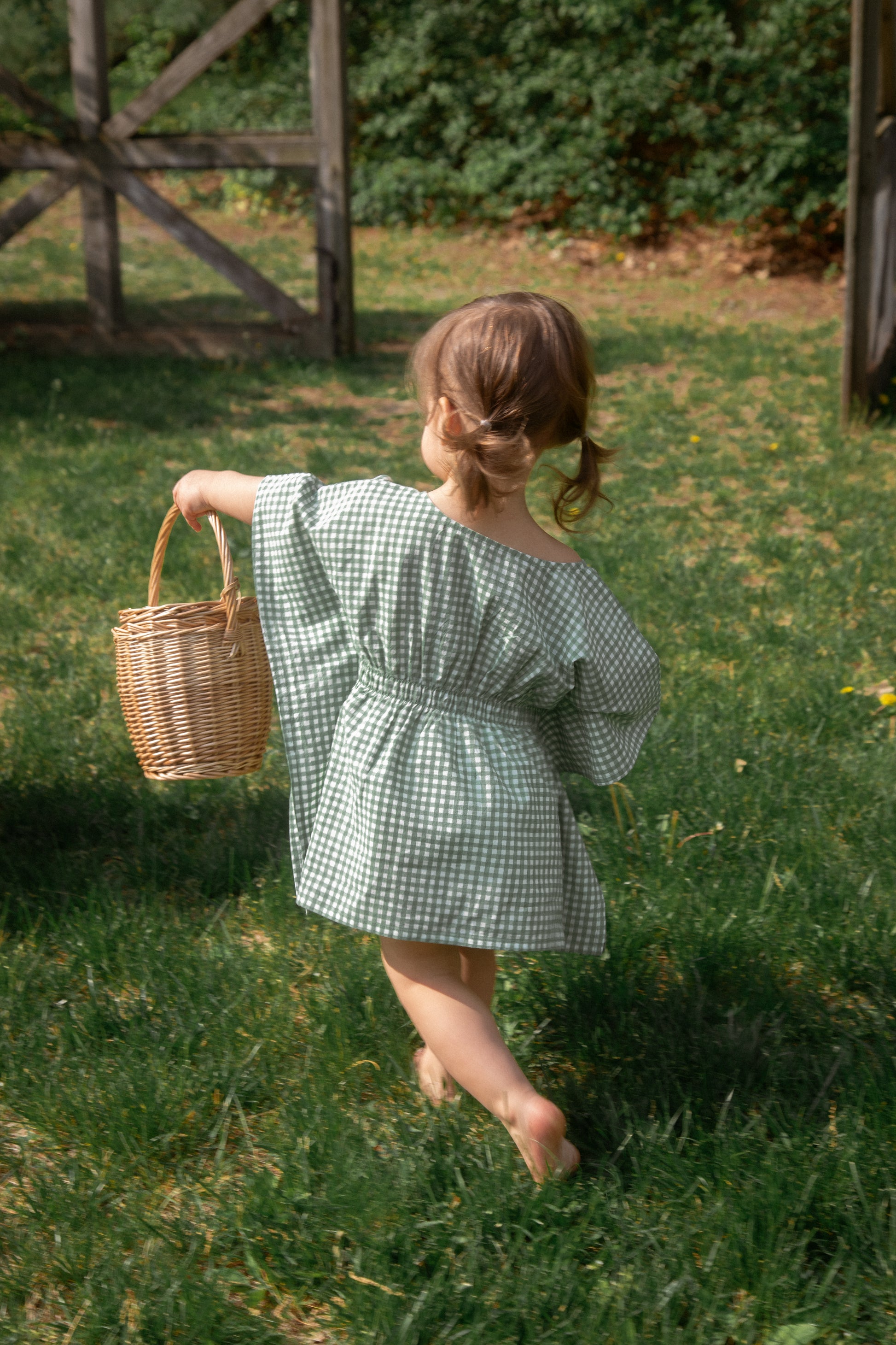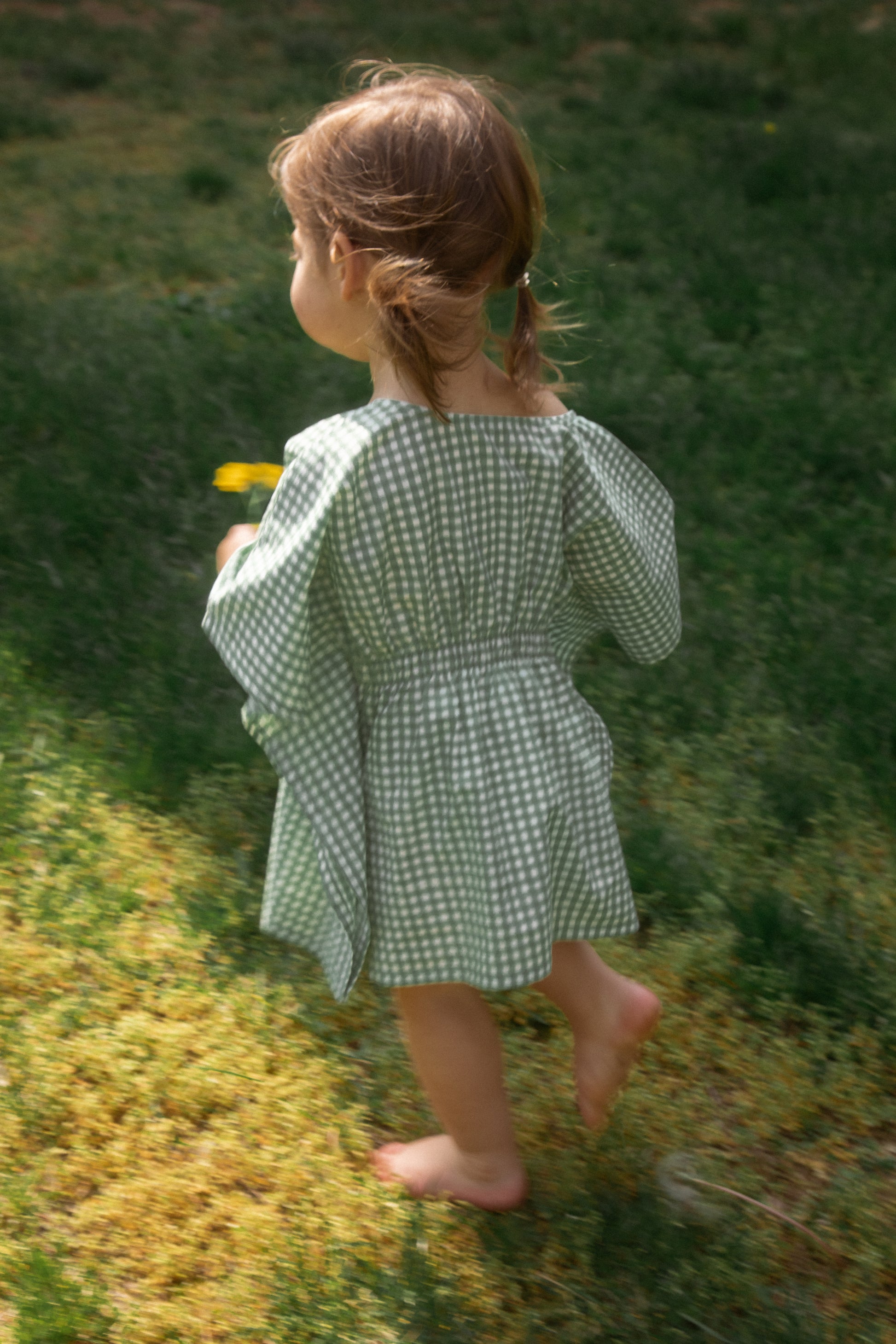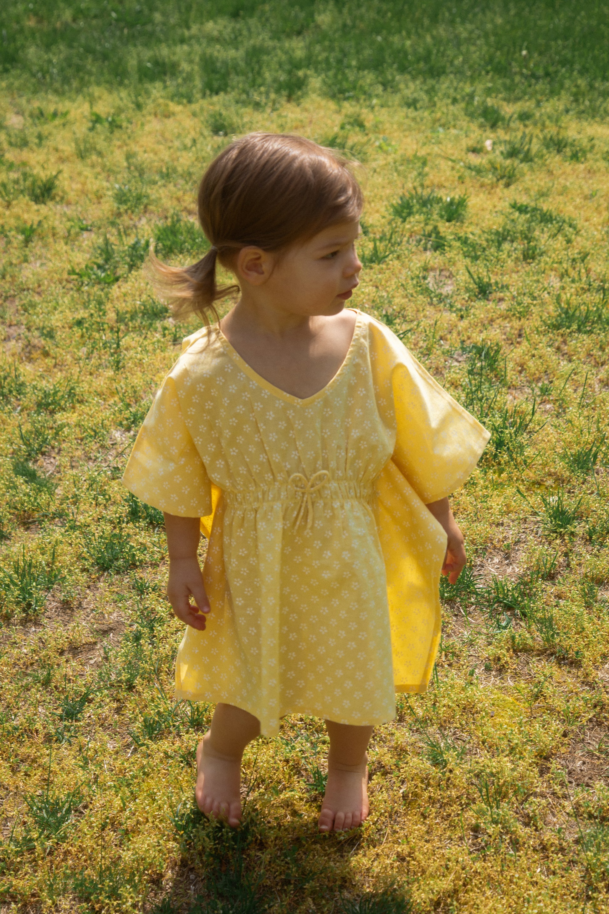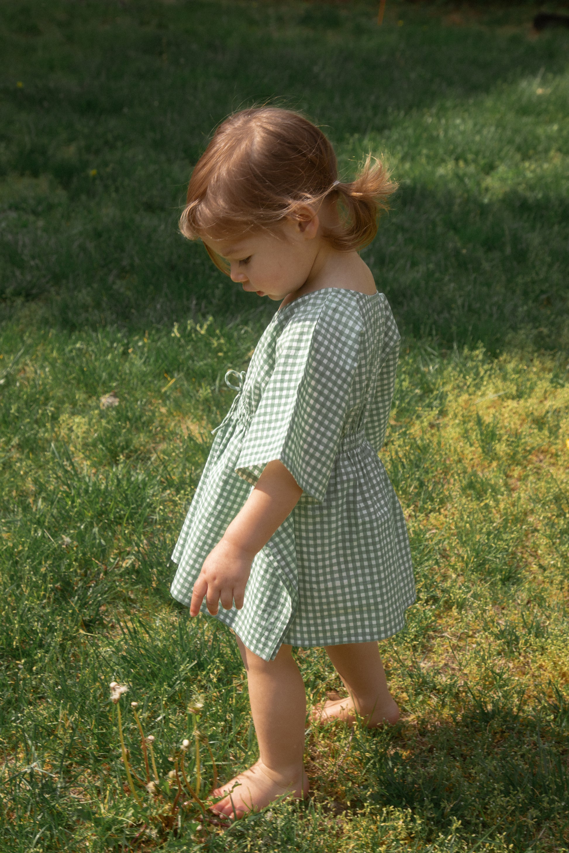 A matching caftan for your mini. Our signature block-printed gingham has been applied by hand using natural dyes to the finest organic cotton for a designer frock she'll be able to wear for years to come, thanks to our flexible sizing. The Bella Caftan is a multi-purpose toddler dress suitable for everything from afternoon play dates to birthday parties or brunch with the fam.