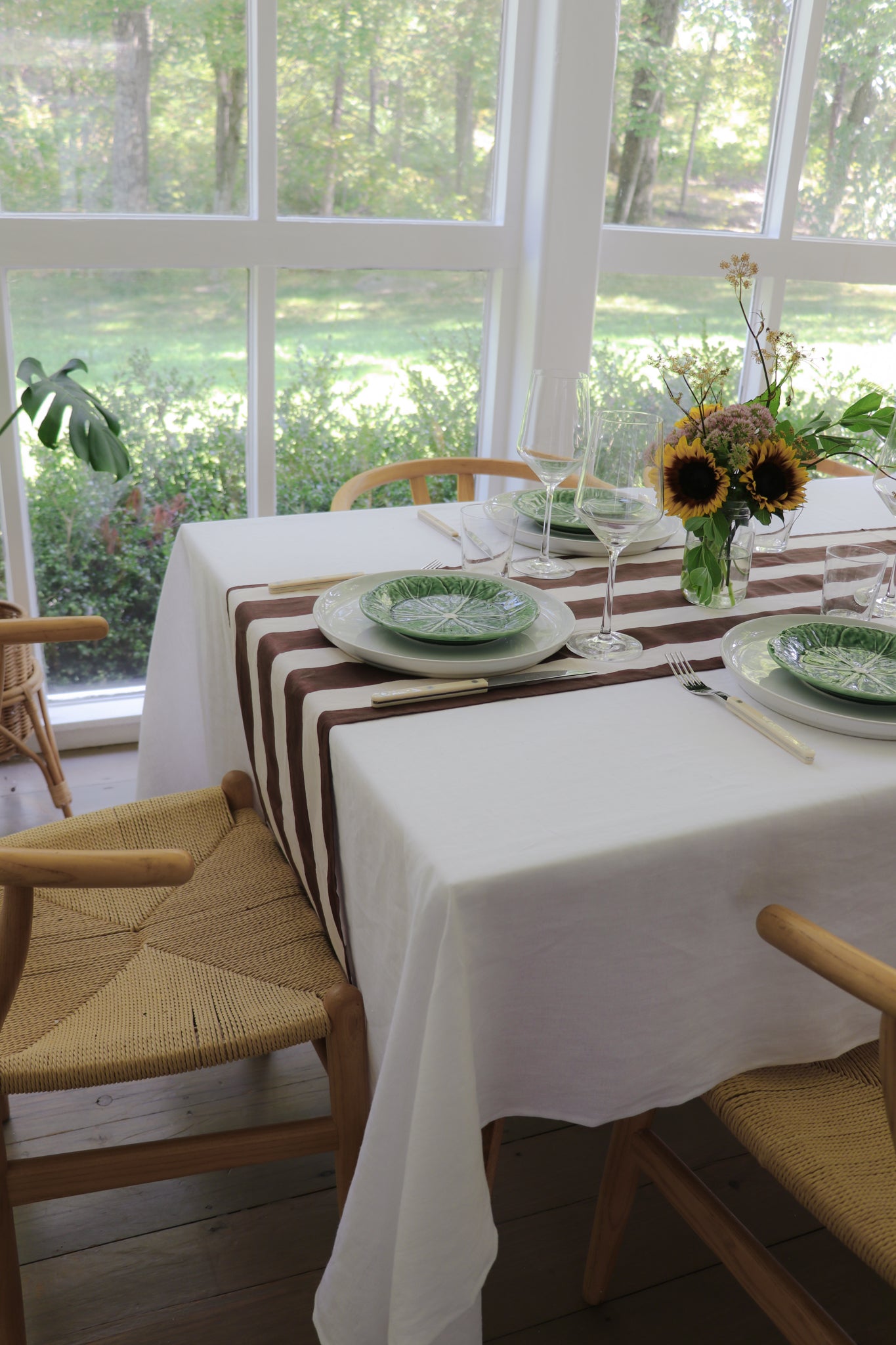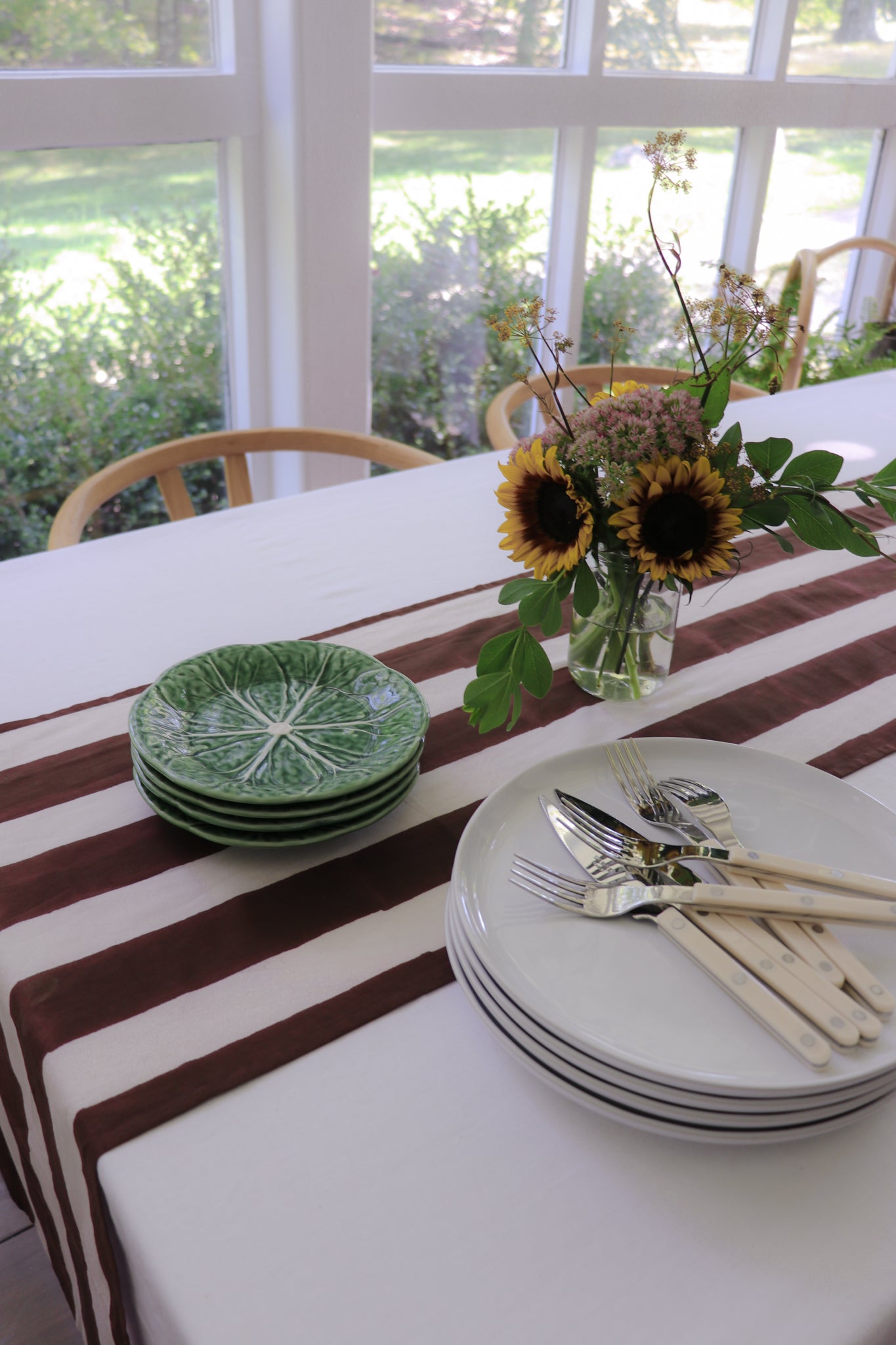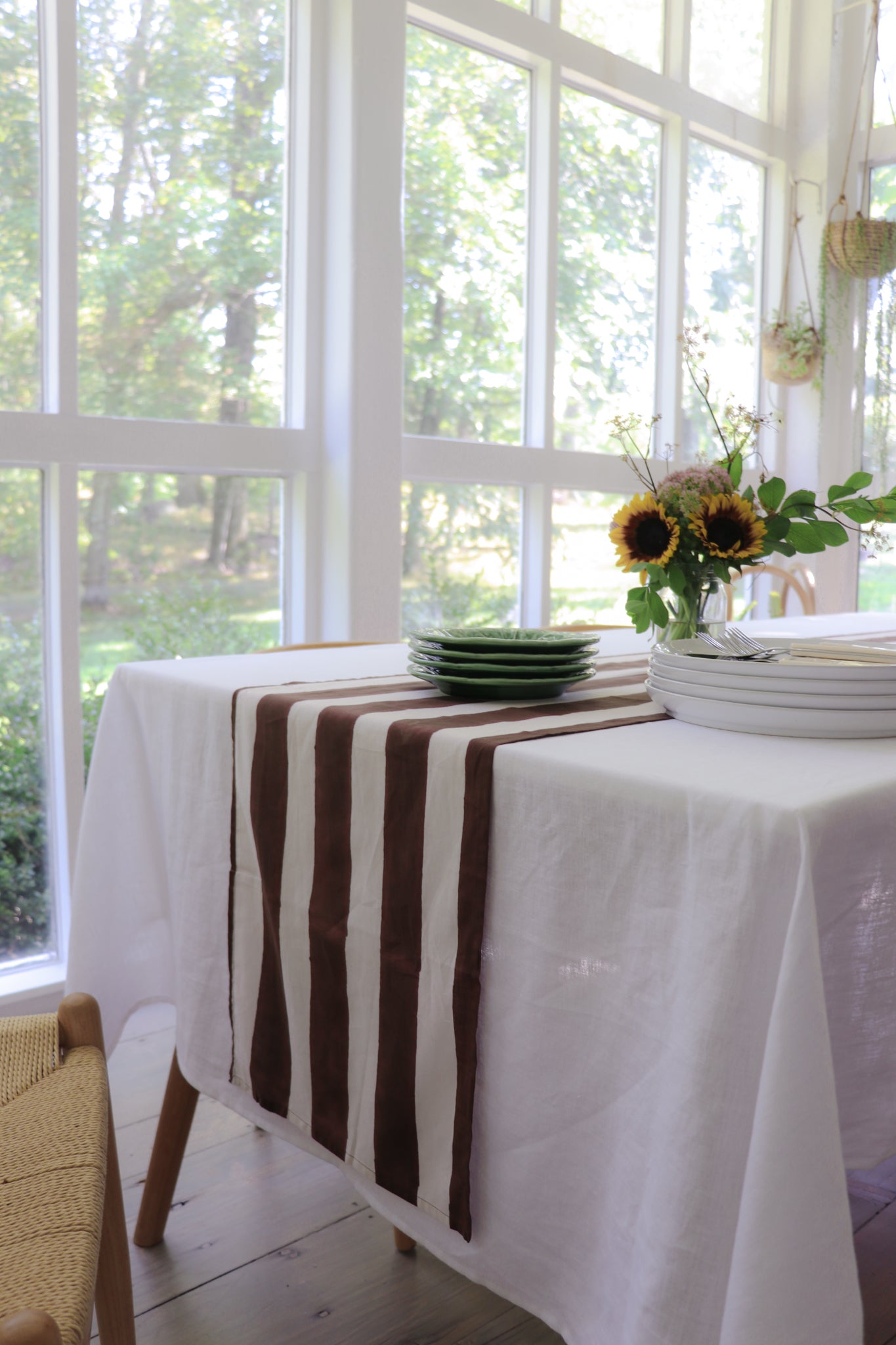 Our rich chocolate brown Cabana Stripe table runner will instantly enhance your dining table and everyday moments spent there. Hand-printed using carved wooden blocks, our wide stripe has a hand-painted look, in the perfect shade of on-trend chocolate brown.