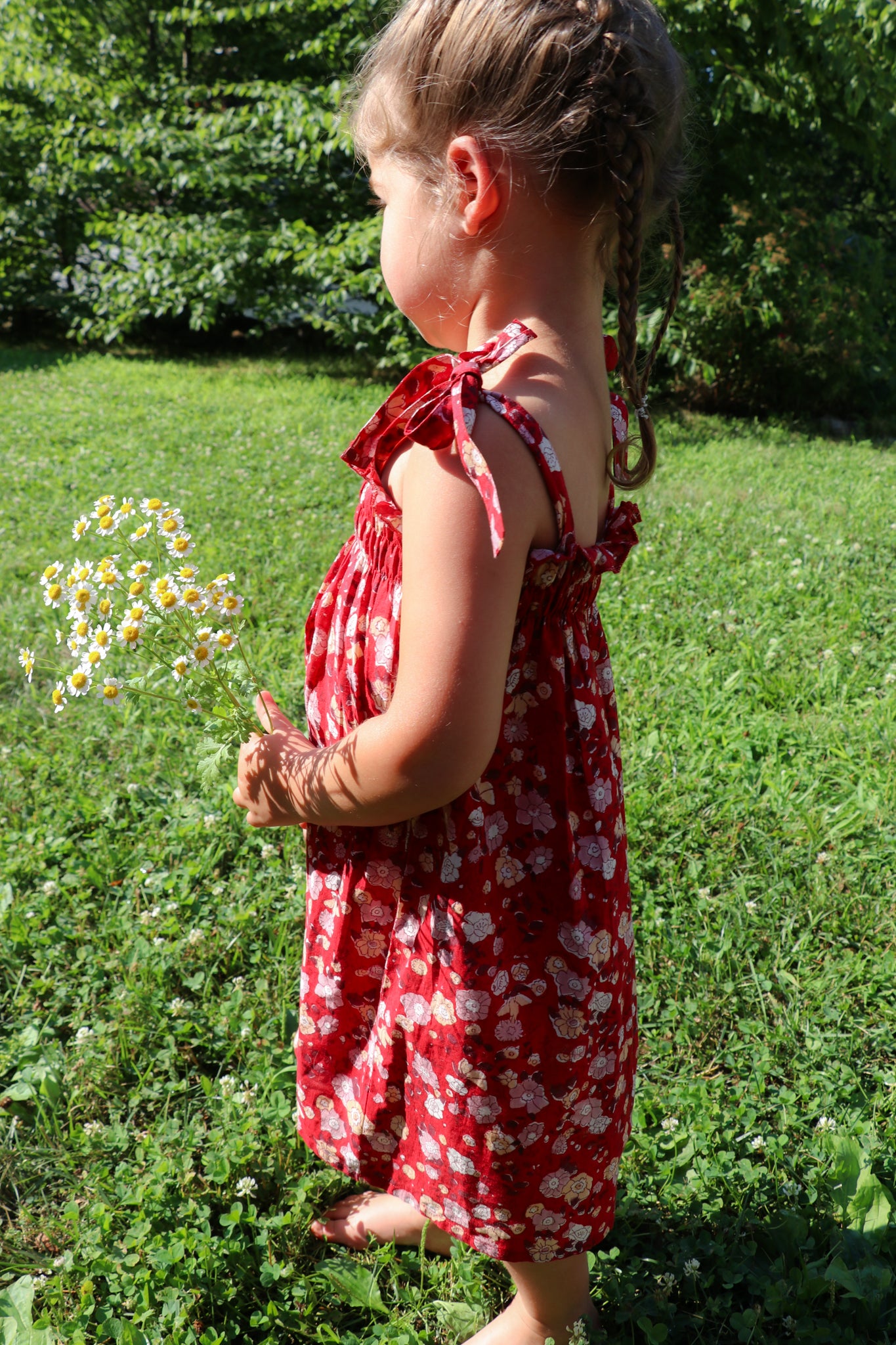 As if this dress weren't cute enough, we've designed it as a one-size toddler dress, fitting most girls ages 2-5. This dress features a comfortable smocked top and adorable ties at shoulders.