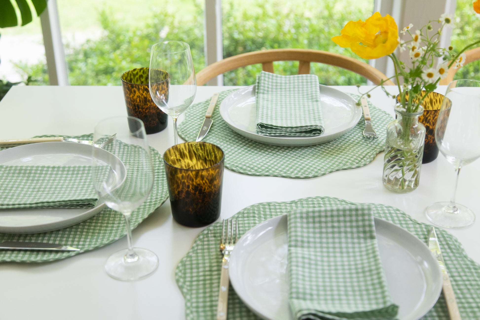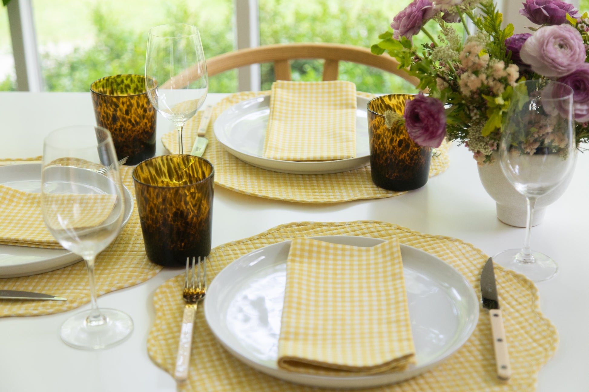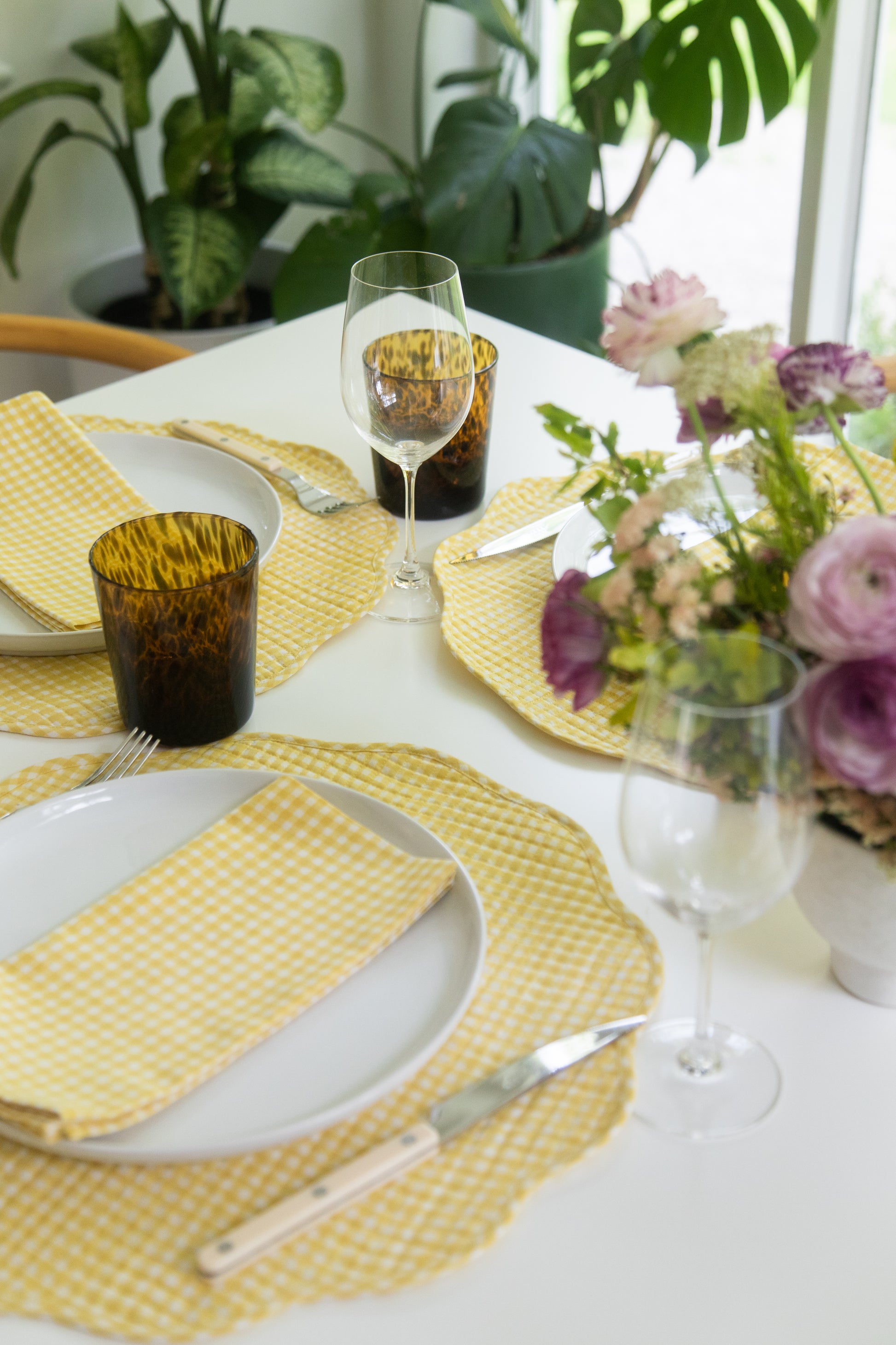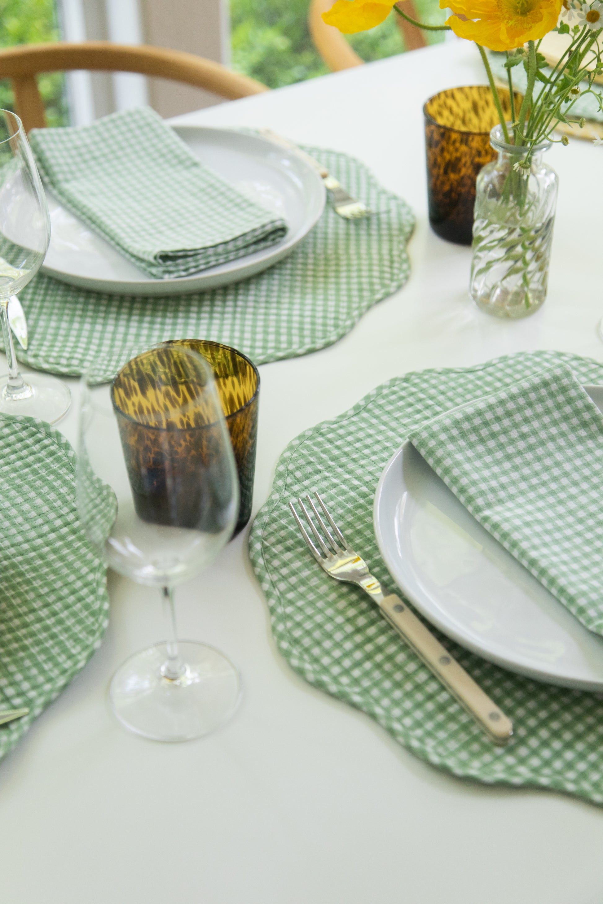 Our scalloped quilted placemats are the perfect addition to elevate your everyday dining experience. The scalloped-edge design carries charm and whimsy, while our vibrant color options keep the look fresh and modern. Our gingham print is block-printed by hand using carved wooden blocks for that perfectly imperfect look.