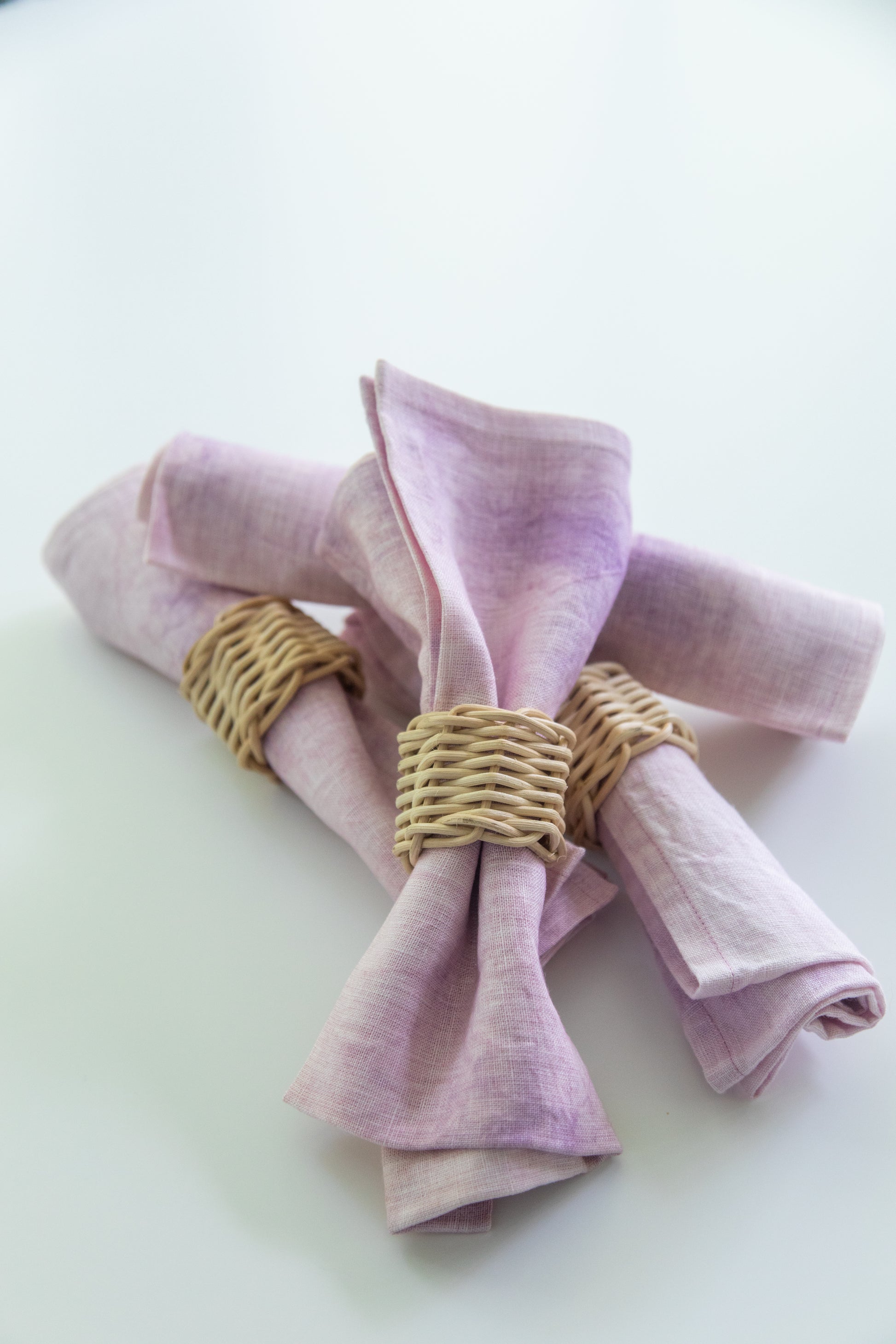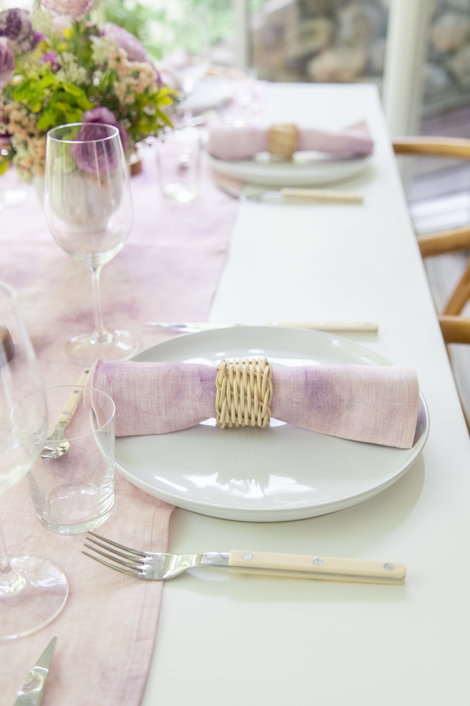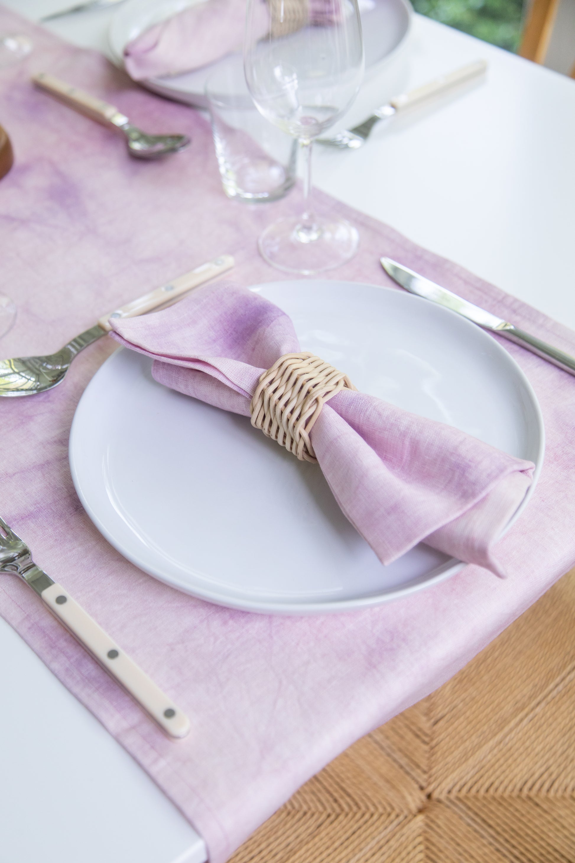 These hand-dyed lilac shibori napkins are a true work of art. We worked with our artisans in India for months to achieve the perfect blend of soft violet and lilac.